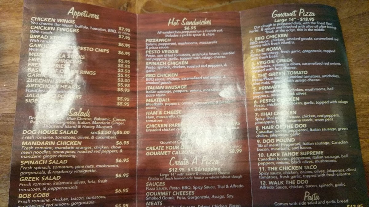 Bob Dog Pizza Menu